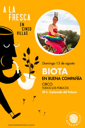 El domingo 13 de agosto, a las 20 horas, en la esplanada del Palacio, tendrá lugar en Biota la siguiente actuación del festival «A la fresca».