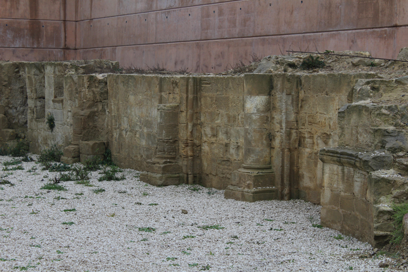 En el muro norte se pueden ver tres semicolumnas adosadas a las pilastras. Las esquinas acaban en una moldura de baquetón flanqueada por dos escocías. Este paramento conserva también restos de policromía con motivos geométricos y marcas incisas que podrían ser grafitis o algún tipo de anotación.