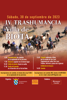 El sábado día 30 de septiembre se celebrará la IV Trashumancia en la Villa de Biota.