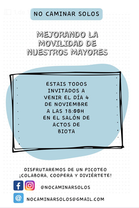 Tendrá lugar en el Salón de Actos de Biota y comenzará a las 18:00 horas.